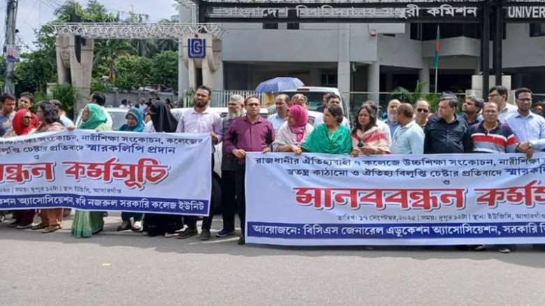 সাত কলেজকে বিশ্ববিদ্যালয় নয়, অধিভুক্ত করার দাবিতে শিক্ষকদের মানববন্ধন
